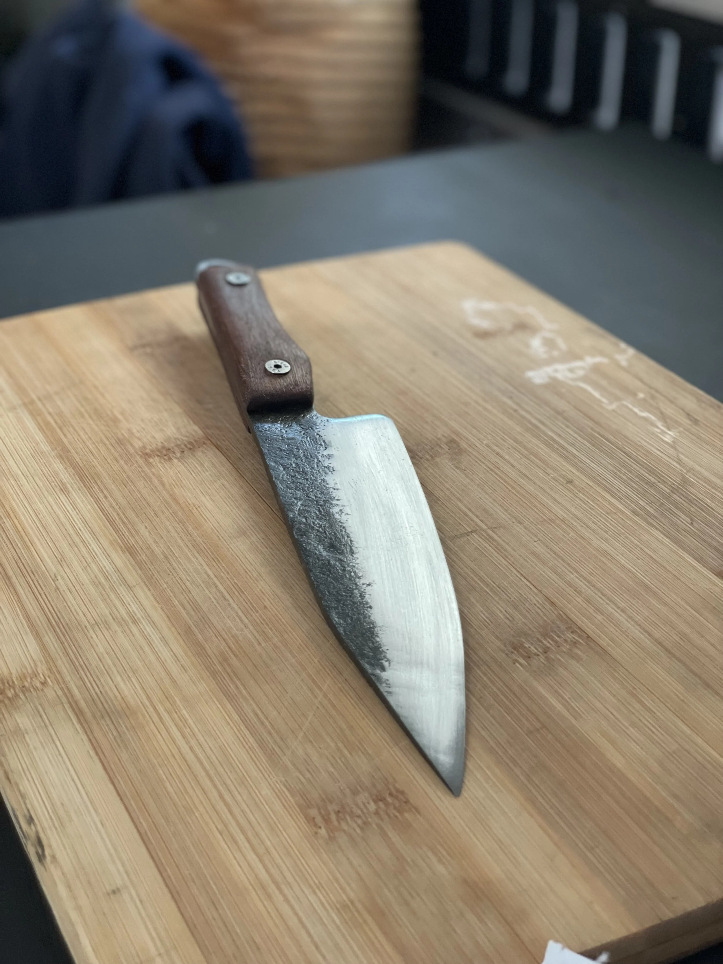 All blades are carbon steel with a brute de forge finish. Swords and axes are 5160, and knives are 1084. Categories: All Knives Swords Axes All | Knives | Swords | Axes | Bushcraft Machete $950.00 Blacksmith Utility Knife $125.00 Chef Knife $215.00 Kitchen Knife $150.00